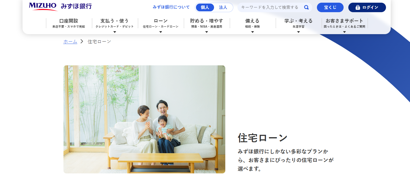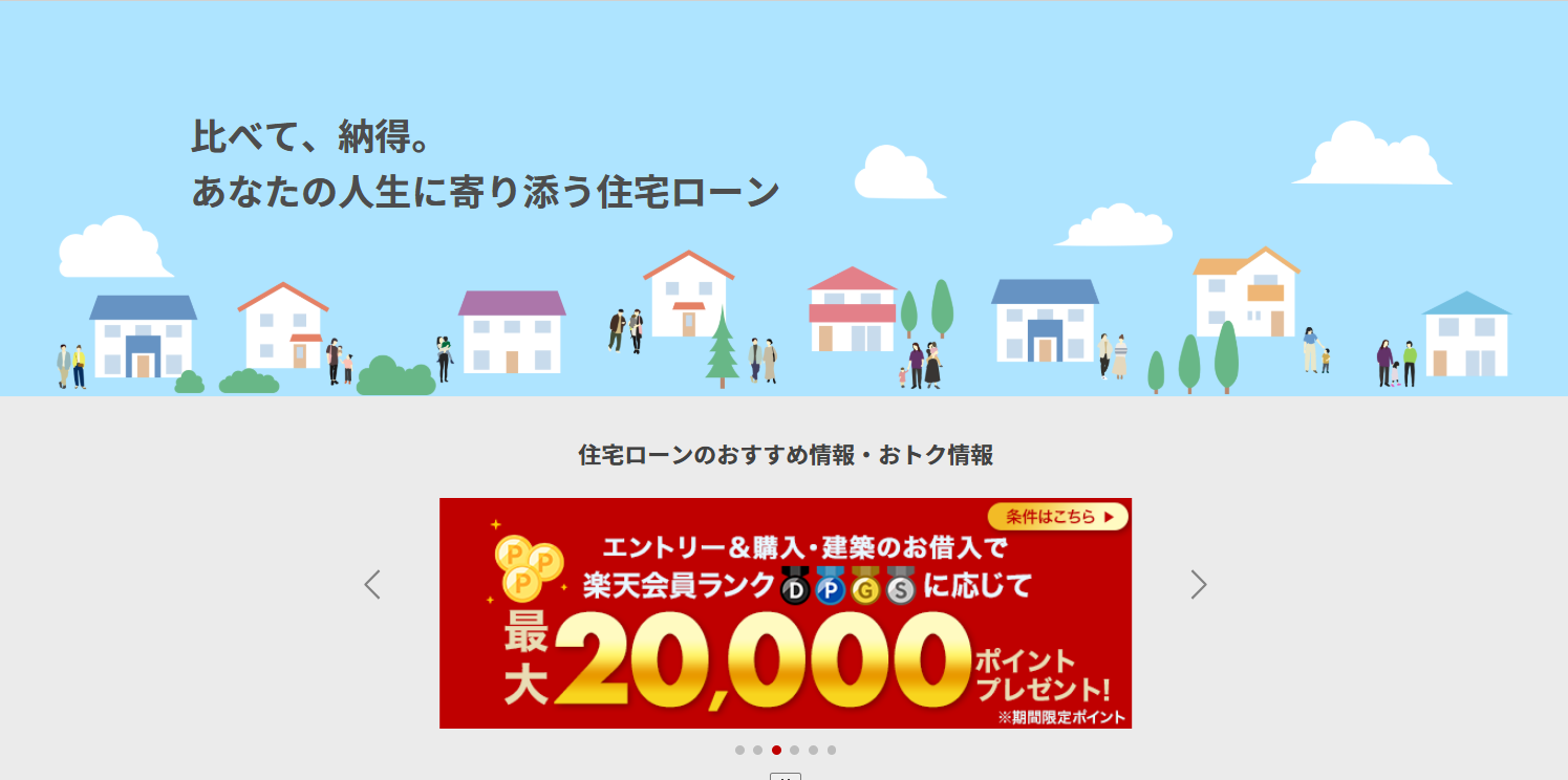 | 金融機関 | みずほ銀行 | 楽天銀行 | SBI新生銀行 | イオン銀行 | SBI ARUHI (フラット35) |