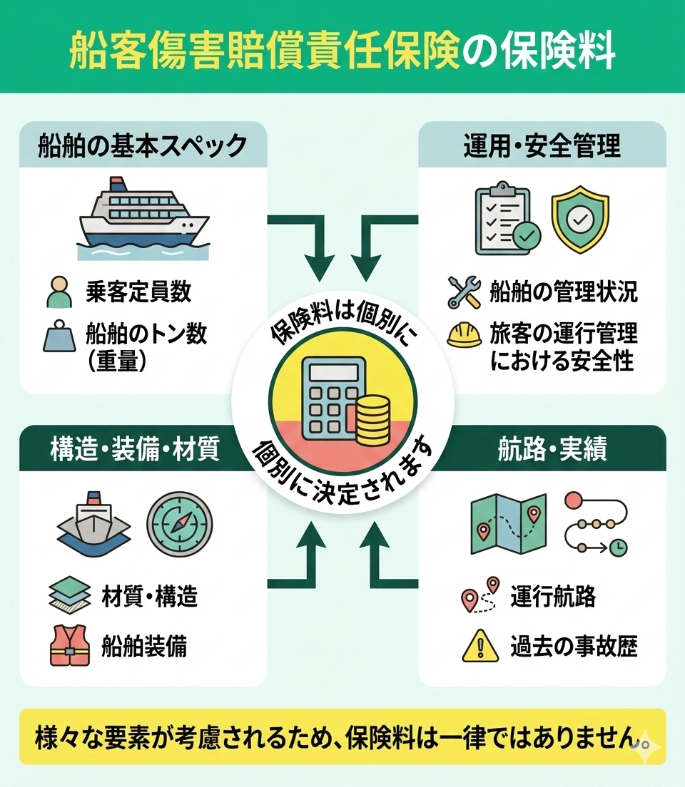 船客傷害賠償責任保険では、以下の要素によって個別に保険料が決まります。