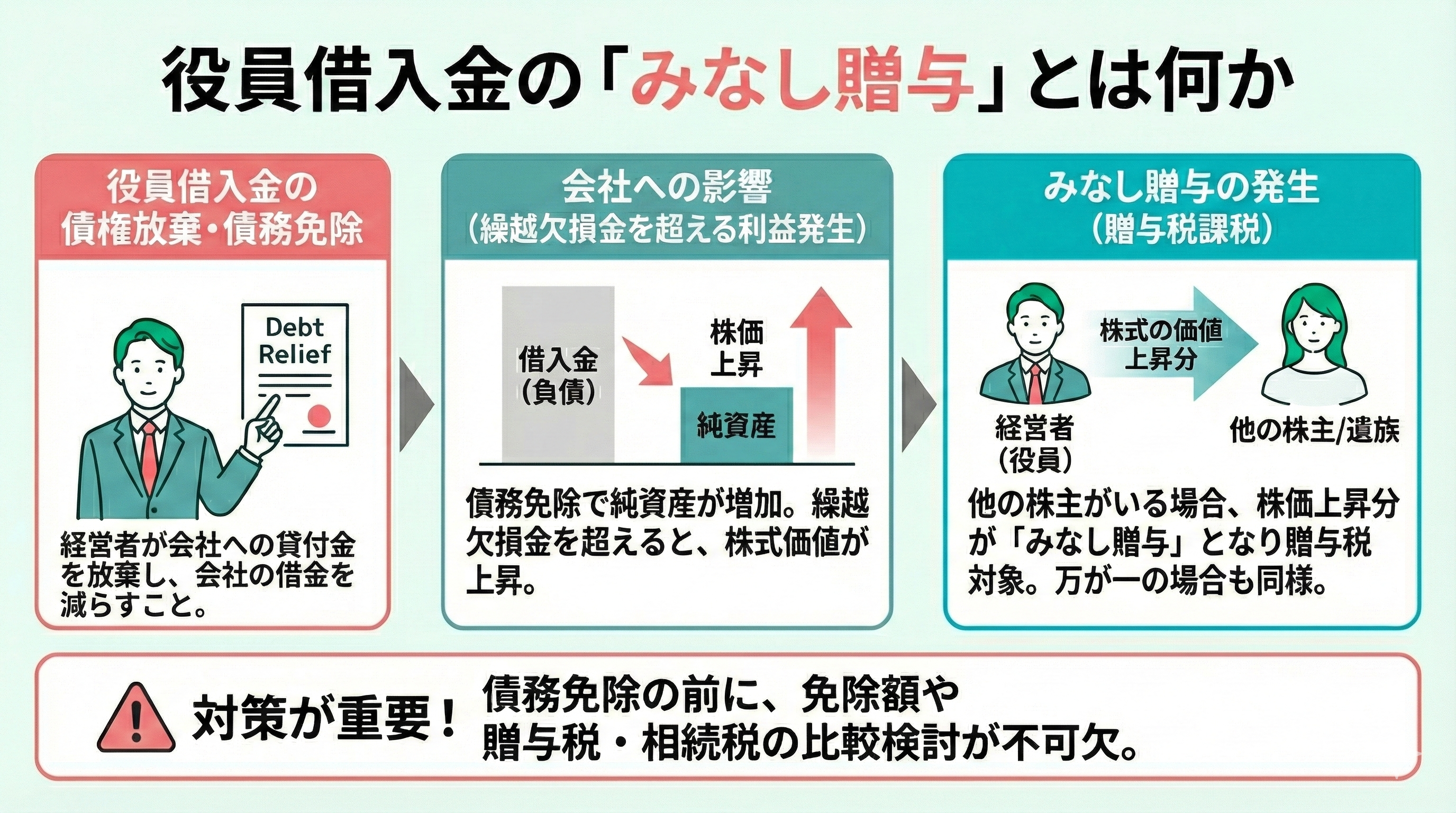 役員借入金の債権放棄・債務免除とは、会社への経営者自身や役員からの借入に関して、双方の合意のもと返済を免除してもらうことを指します。
