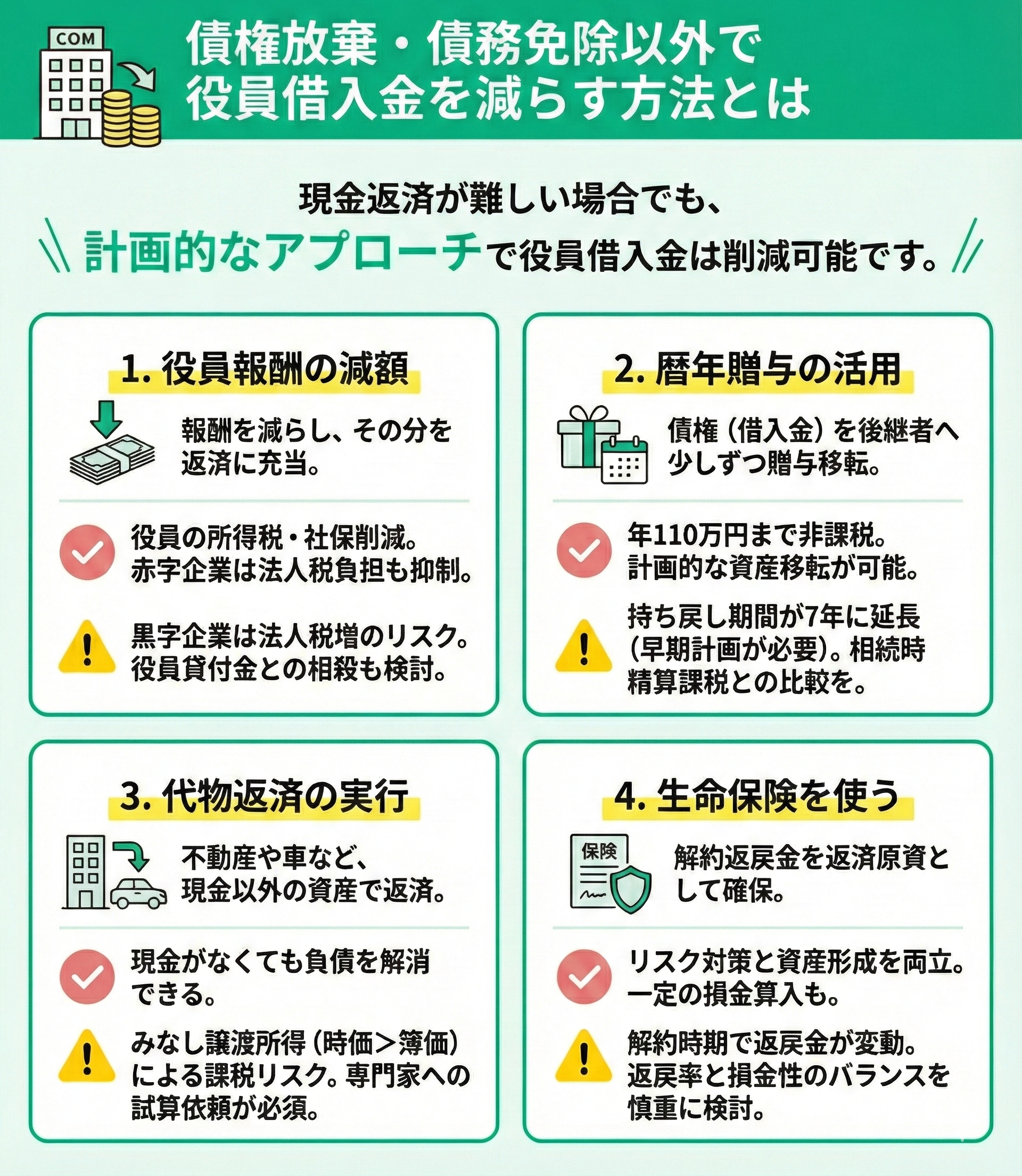 債権放棄・債務免除以外で役員借入金を減らす方法とは