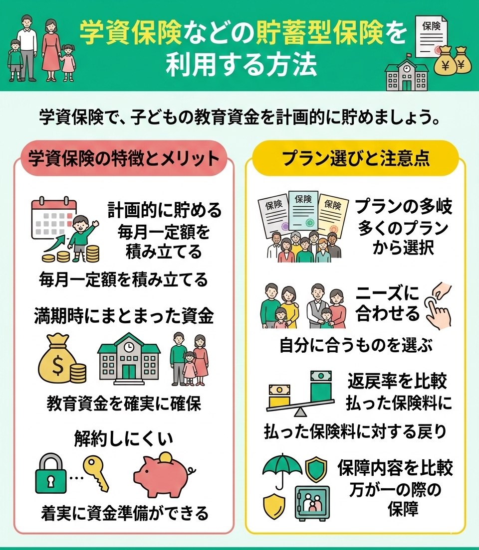 学資保険などの貯蓄型保険を利用する方法