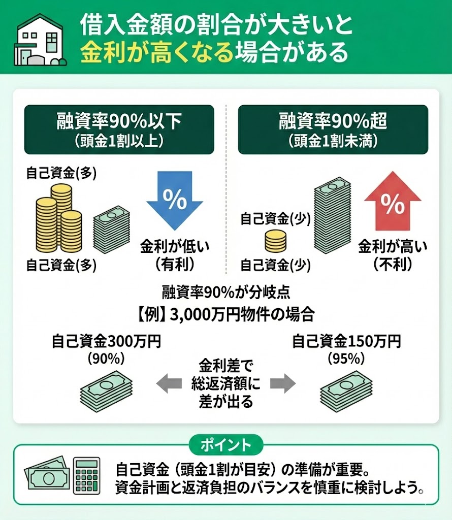 - 借入金額の割合が大きいと金利が高くなる場合がある