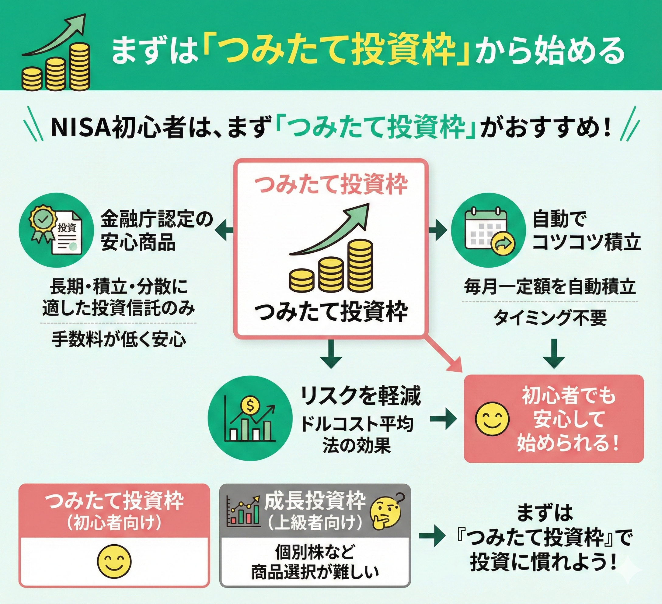 NISA初心者は、まず「つみたて投資枠」から始めることをおすすめします。