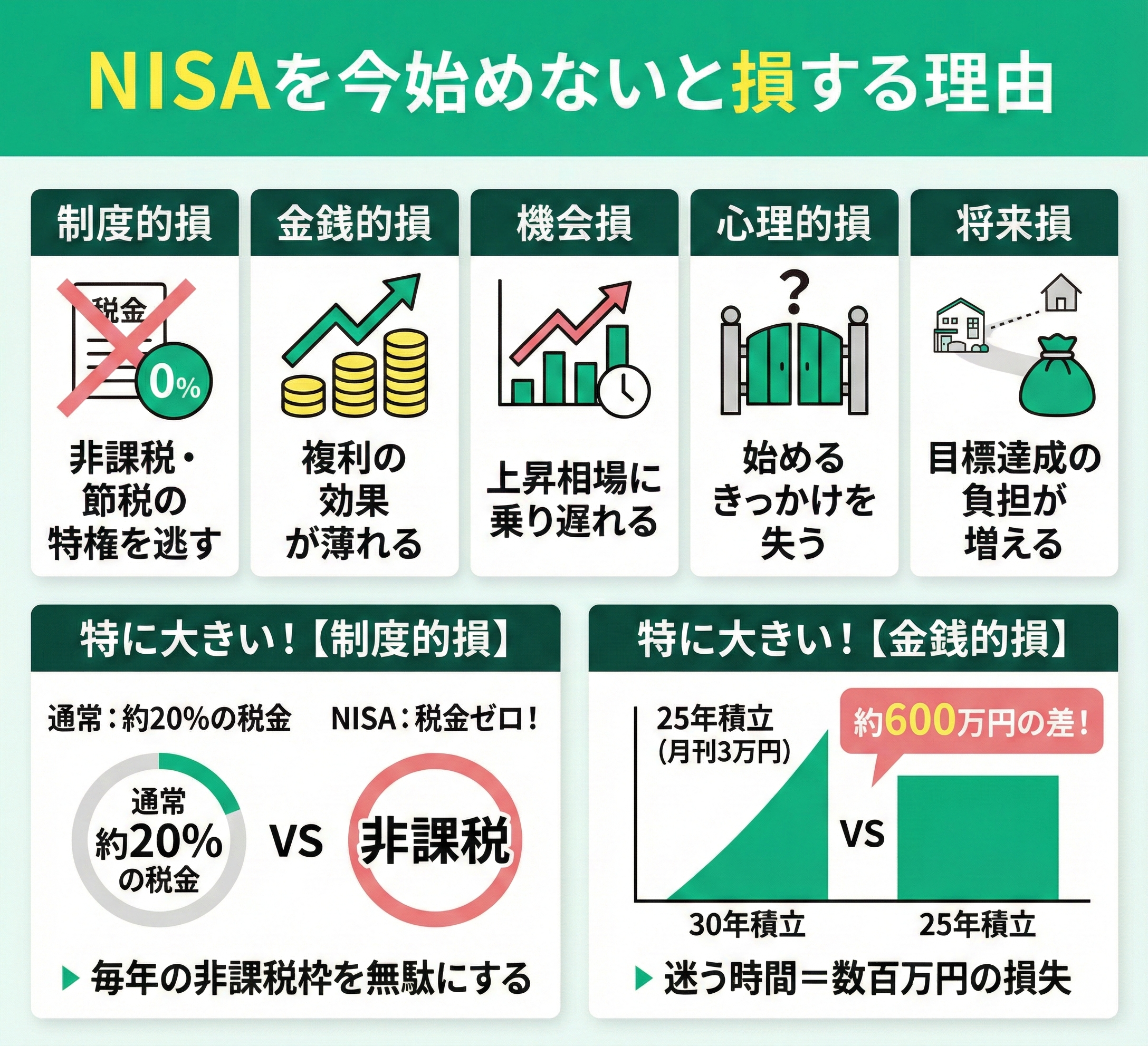 NISAを始めるタイミングを先送りにすると、後から取り返しのつかない損をする可能性があります。