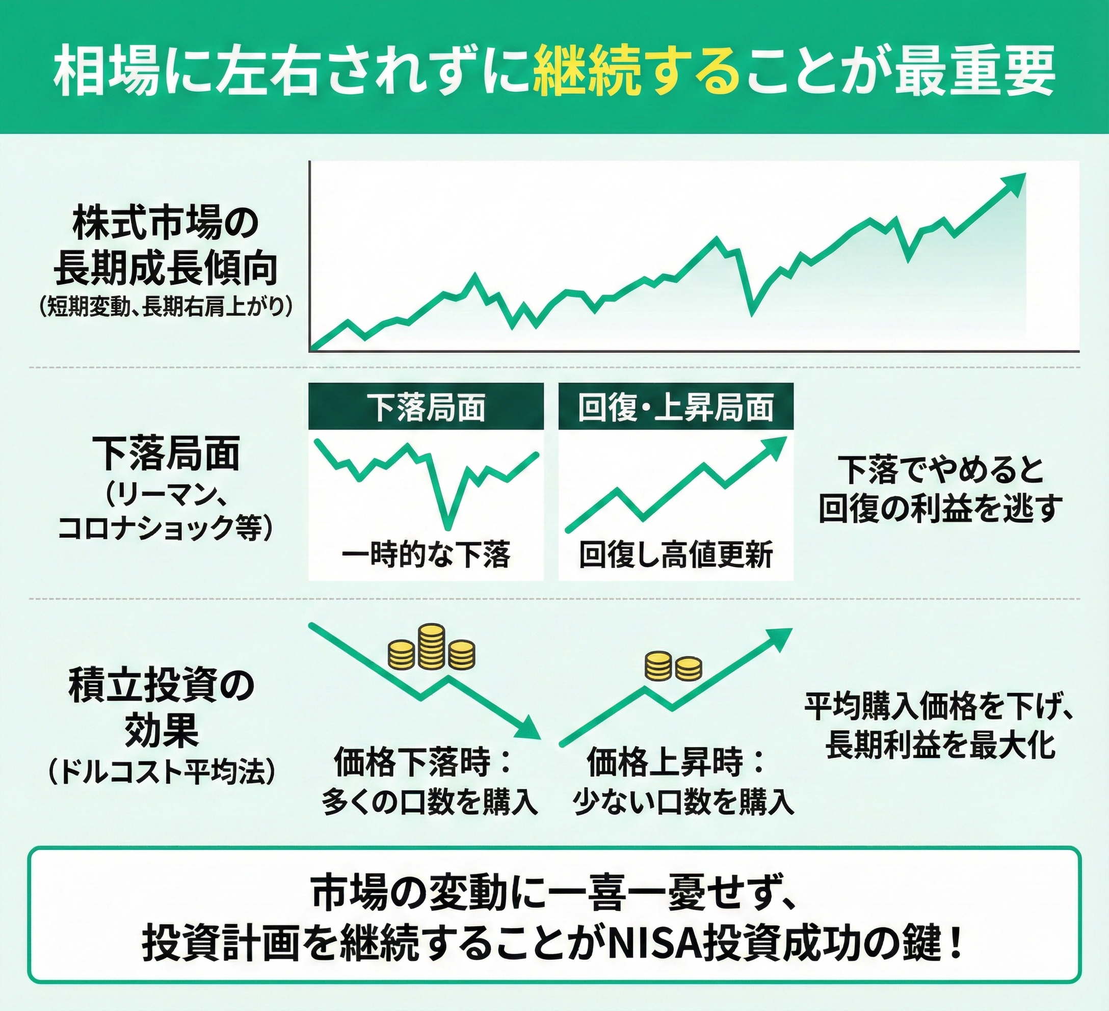 NISA投資で最も重要なのは、相場に左右されずに継続することです。