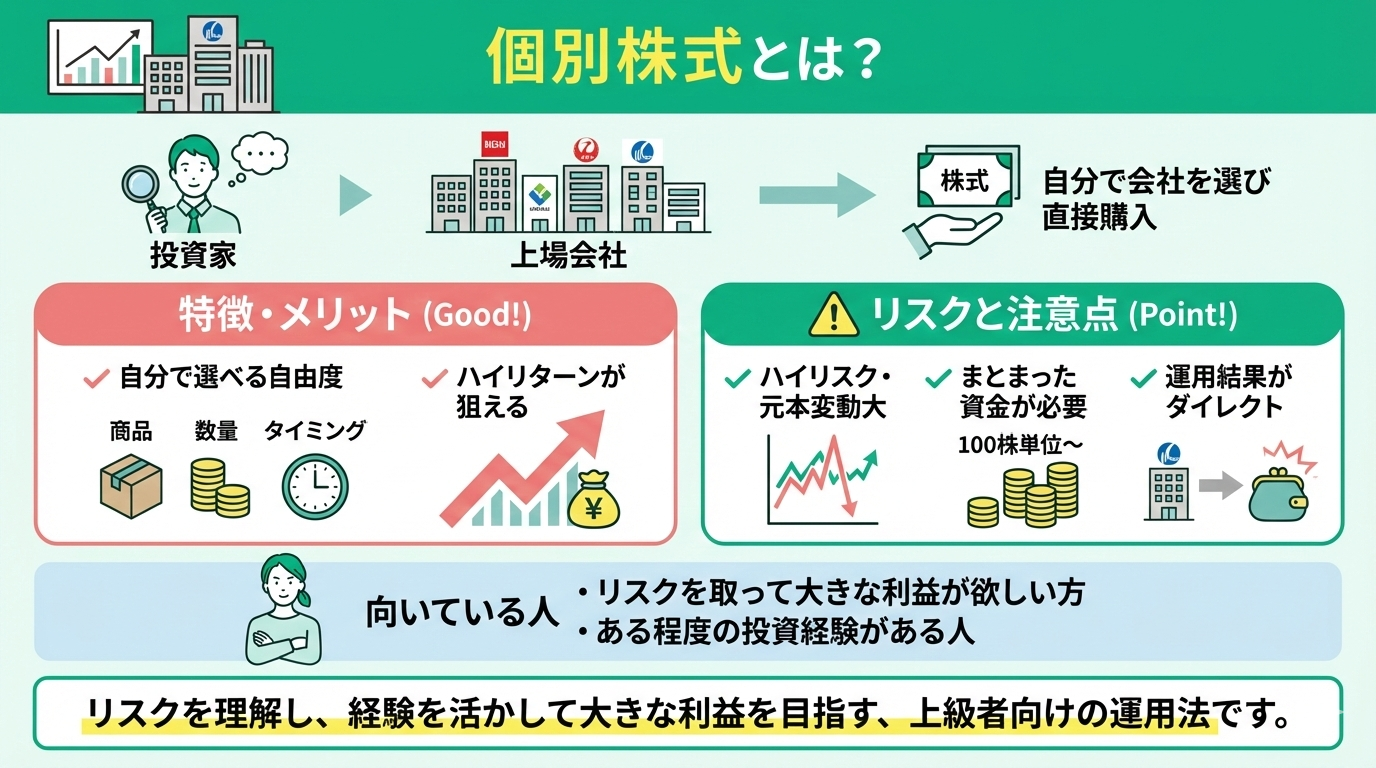 個別株式は、上場会社の中から自分で会社を選んで直接株を購入することです。