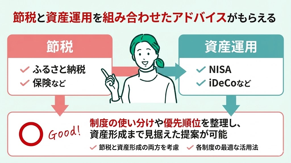 - 節税と資産運用を組み合わせたアドバイスがもらえる