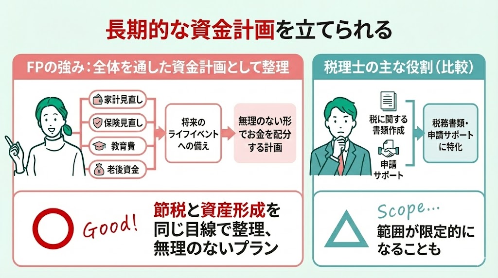FPに節税の相談をすると、長期的な資金計画を立てられます。