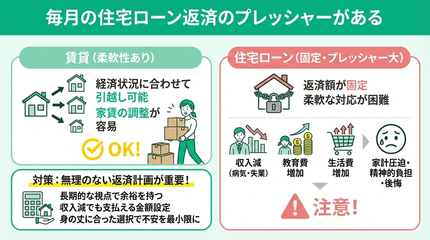 - 毎月の住宅ローン返済のプレッシャーがある