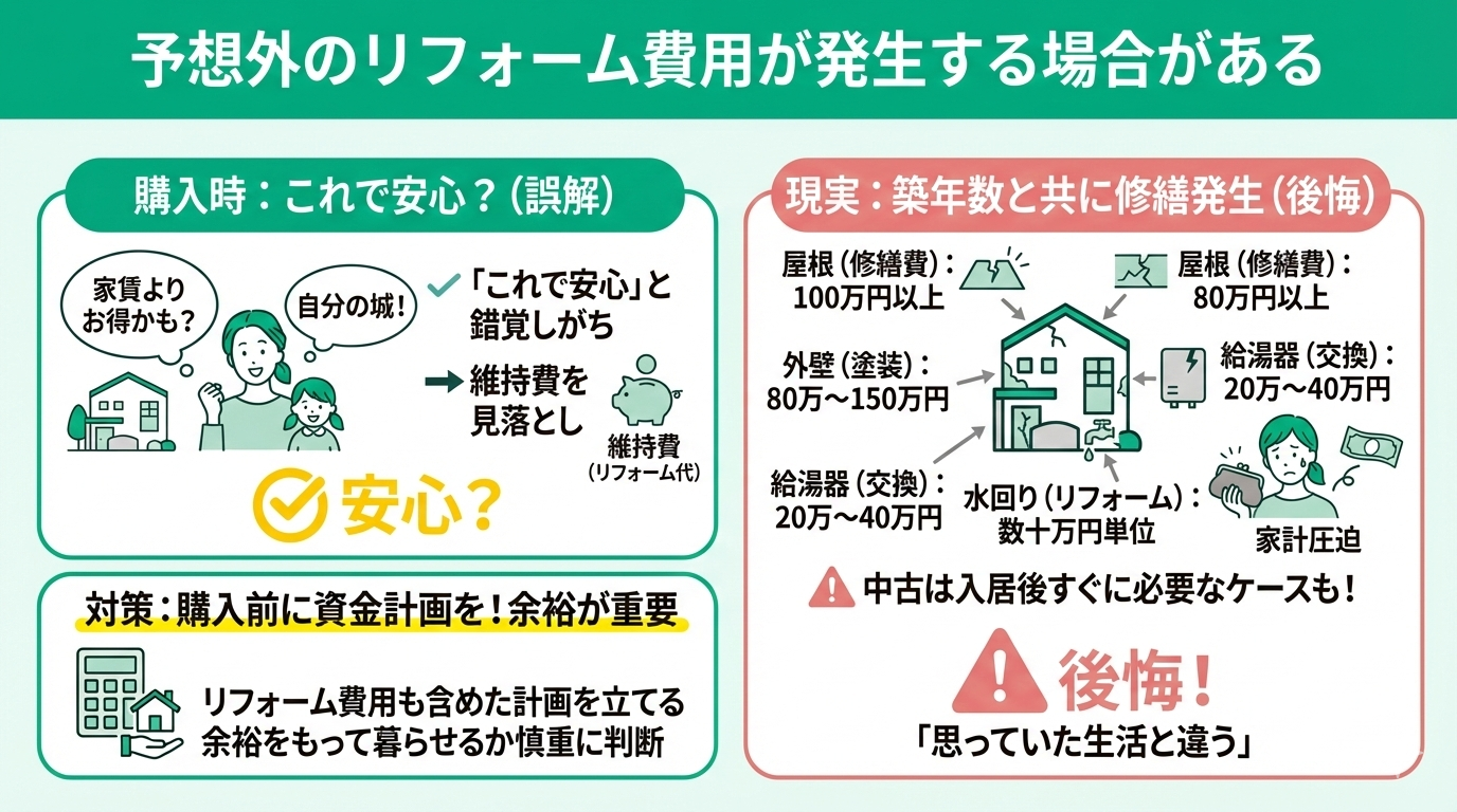 - 予想外のリフォーム費用が発生する場合がある
