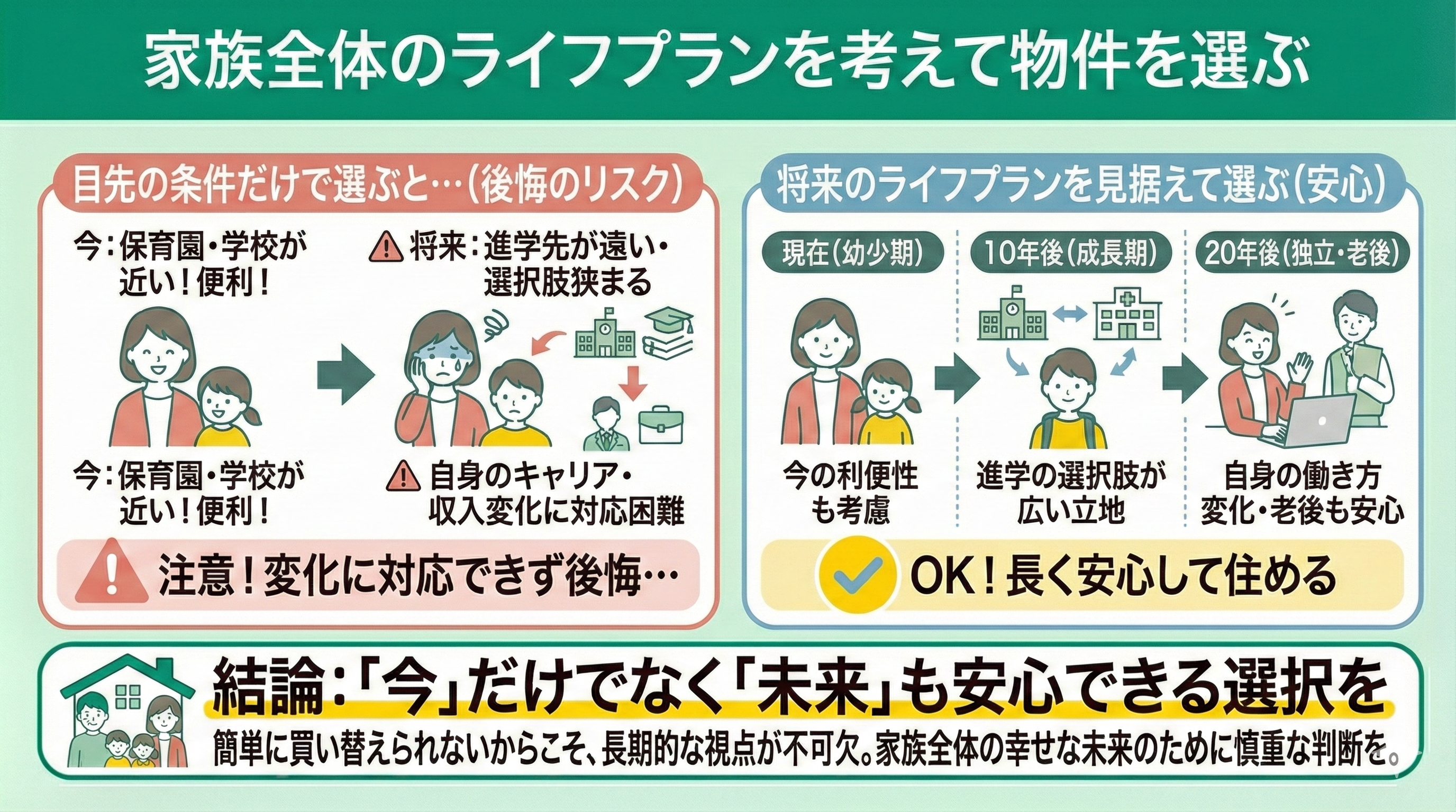 - 家族全体のライフプランを考えて物件を選ぶ