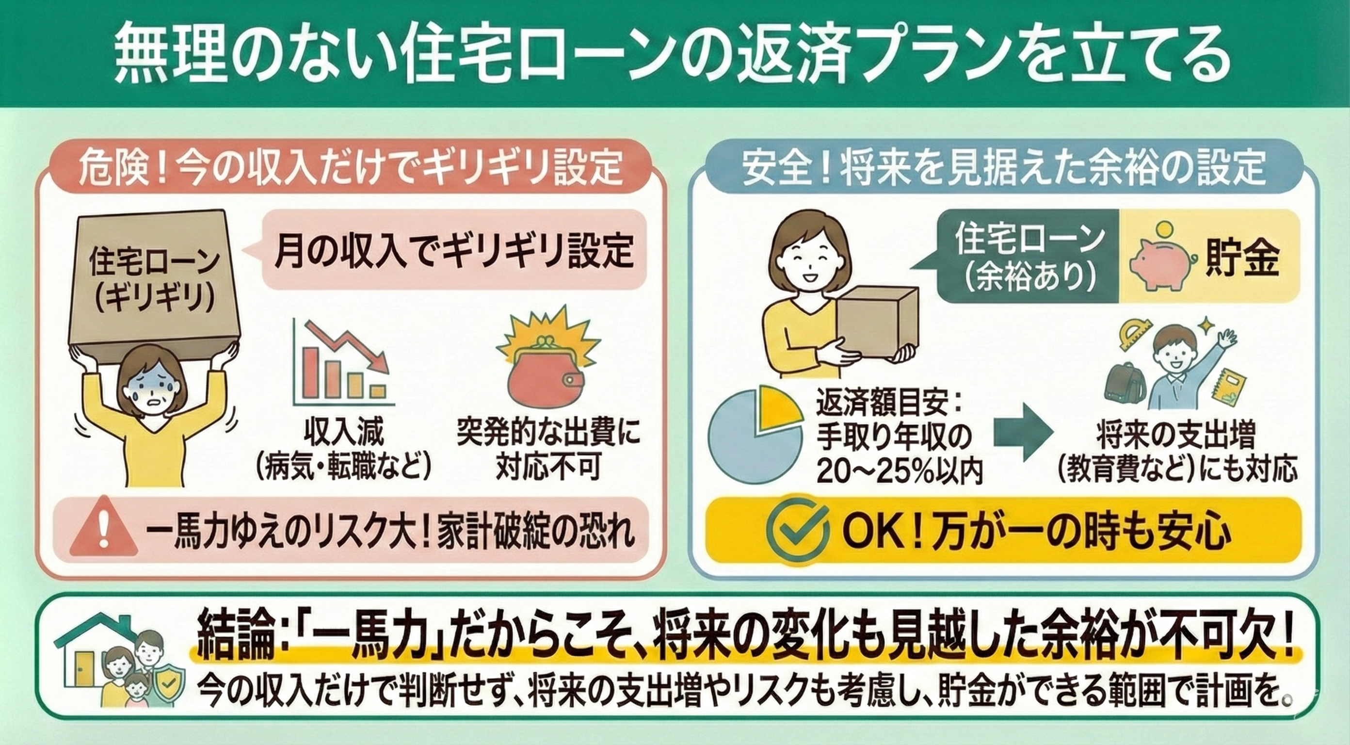 住宅購入は人生の大きな決断です。後悔しないためにも、身の丈に合った返済計画を立てましょう。