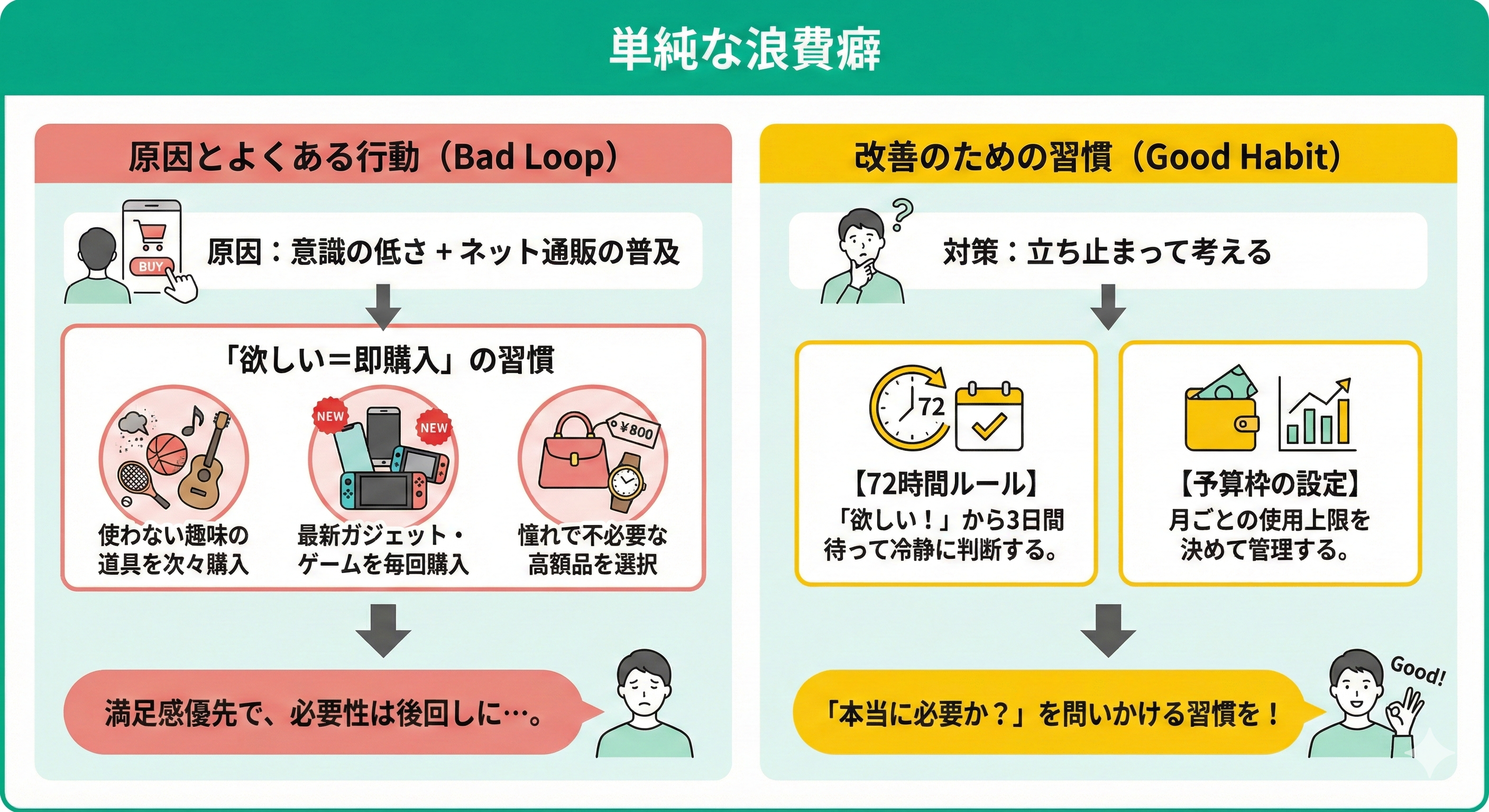 このような無駄遣いは、満足感を優先し、実際の必要性や使用頻度が後回しになりがちです。