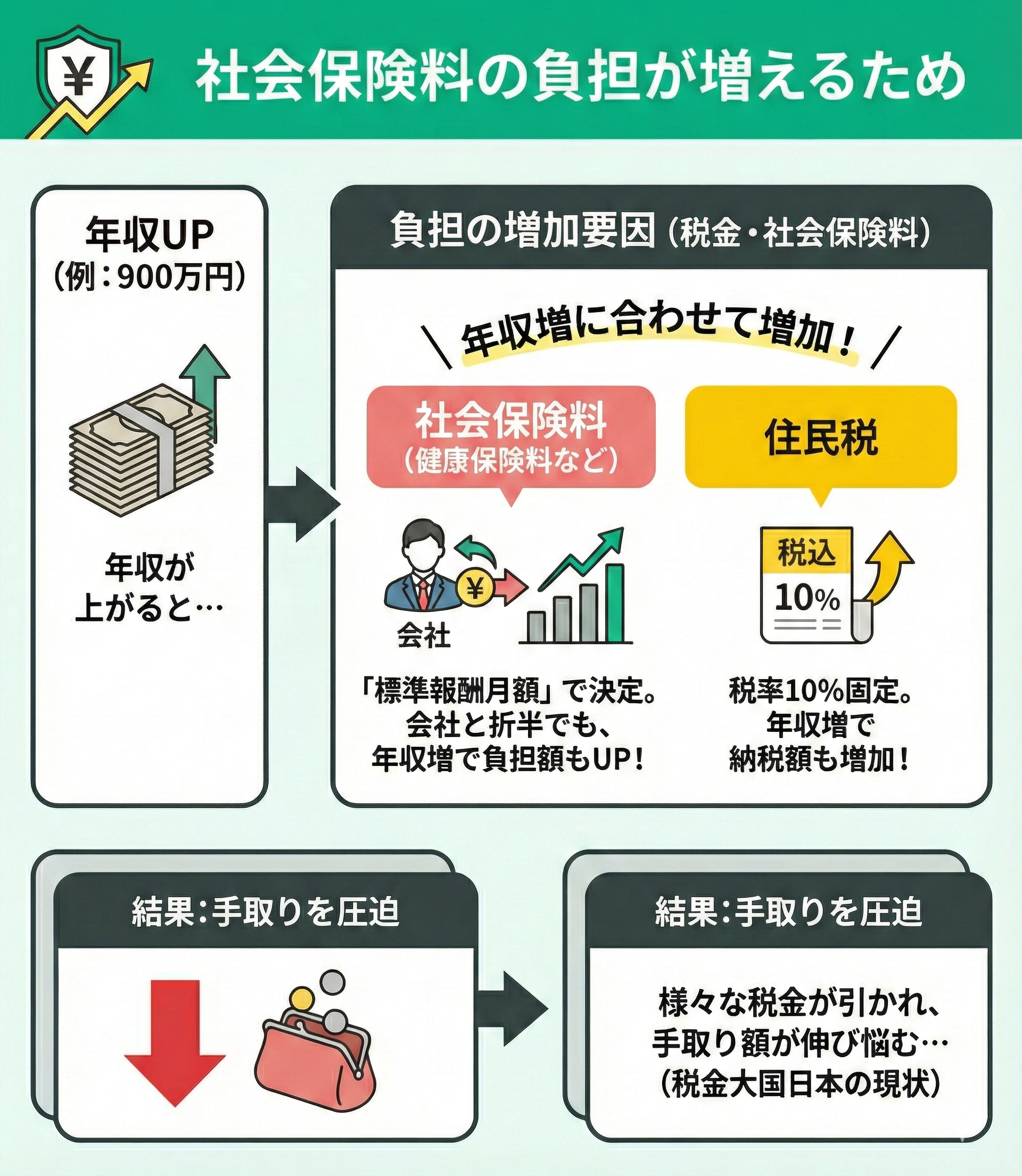 - 社会保険料の負担が増えるため