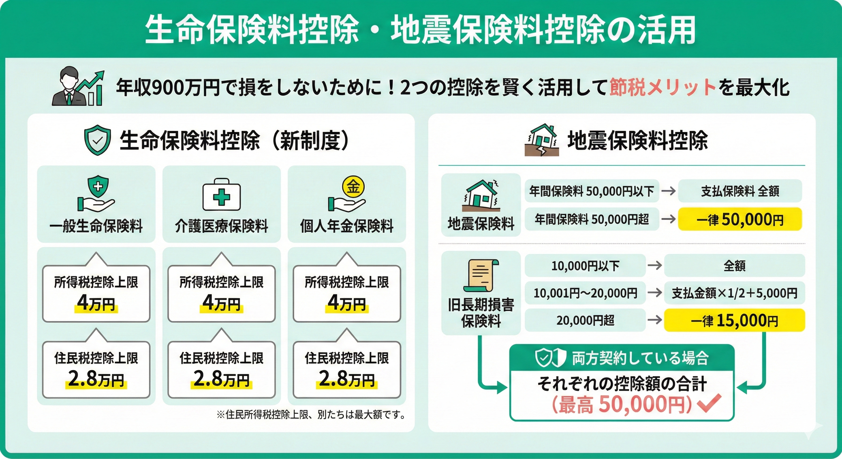 | 地震保険料 旧長期損害保険料 両方契約している場合 | それぞれの保険の控除額の合計 (最高50,000円) |