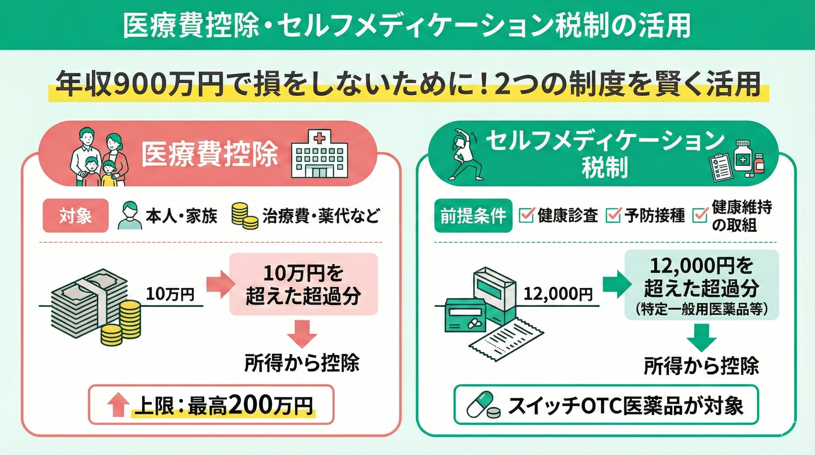 年収900万円で損をしないために、医療費控除・セルフメディケーション税制を活用しましょう。