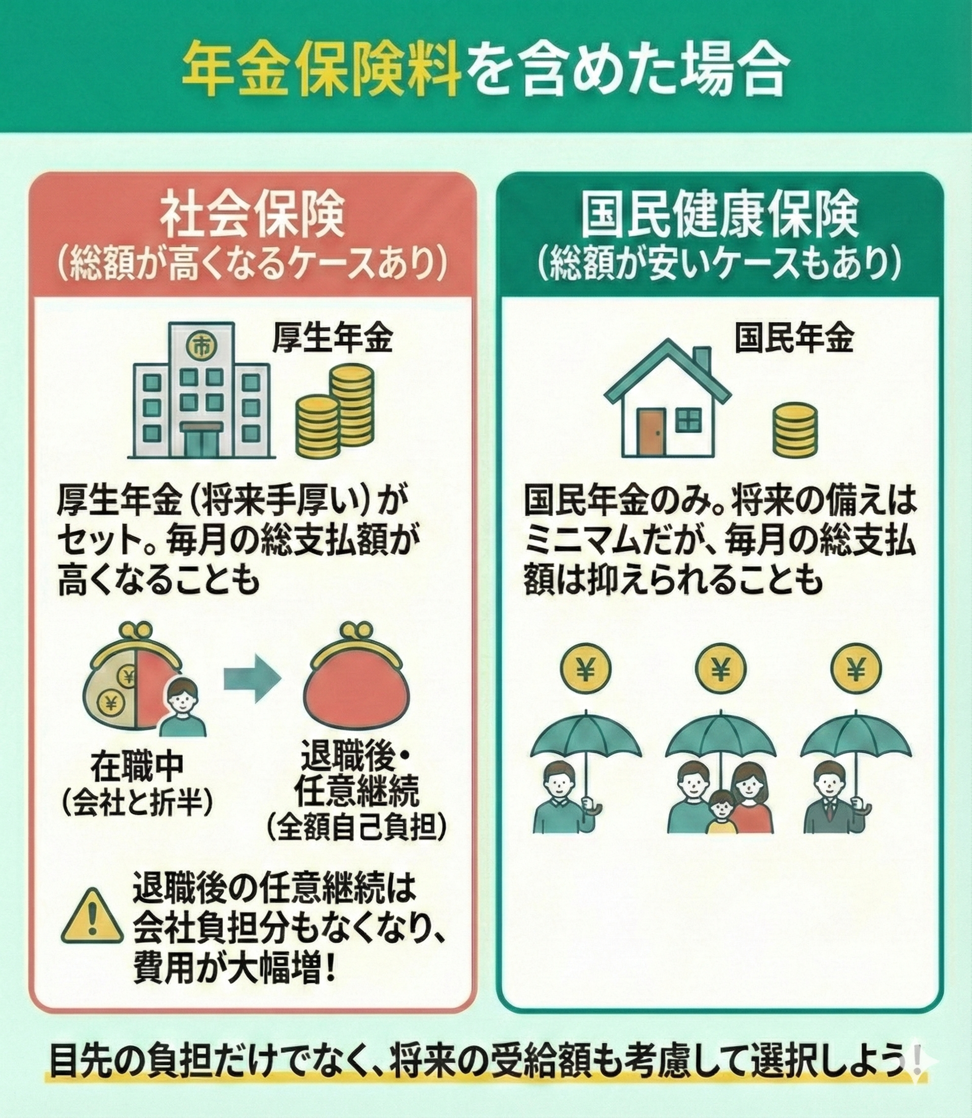 自分の収入や働き方に応じて、どちらの保険が適しているかを慎重に判断することが重要です。