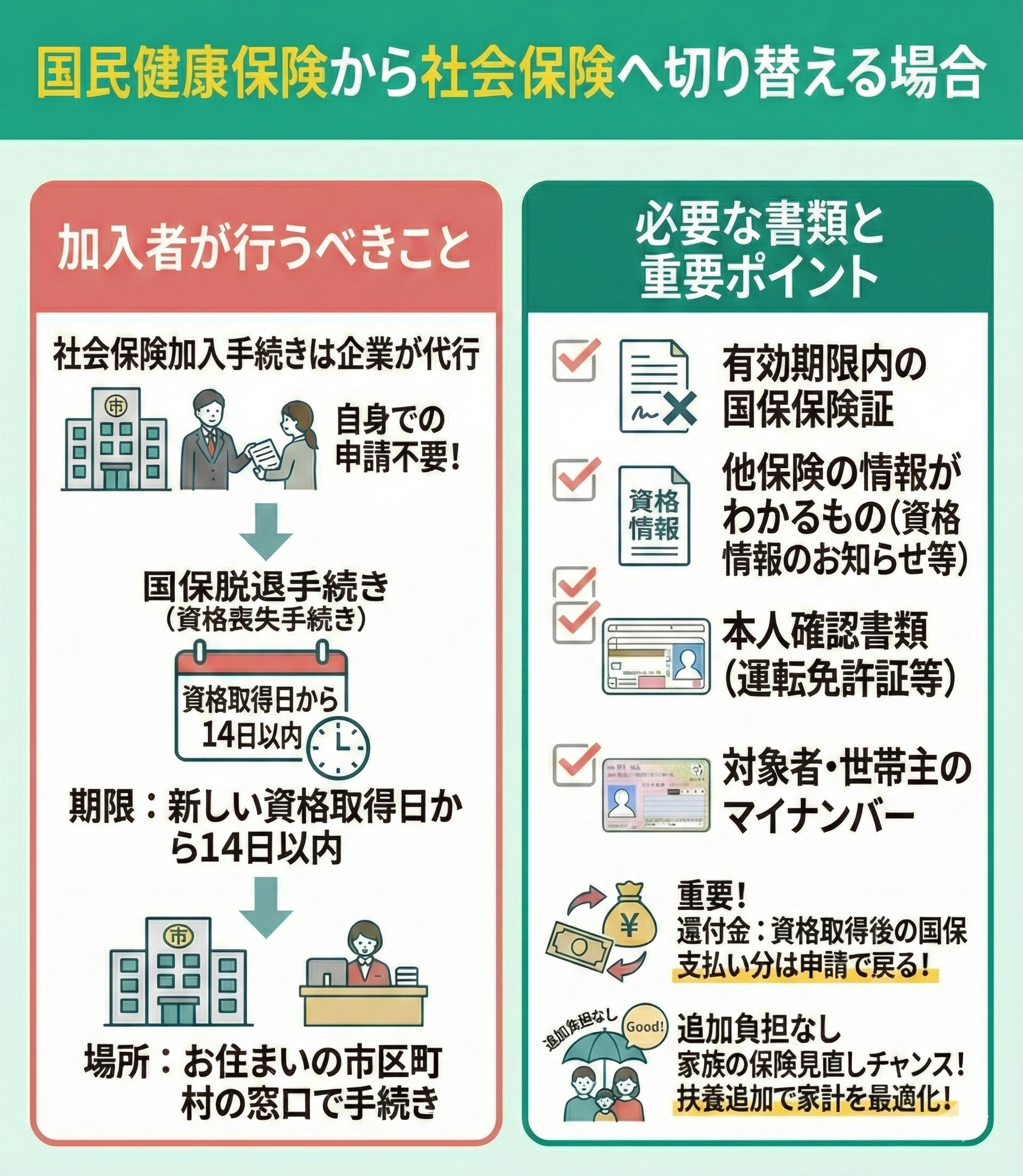 - 社会保険と国民健康保険の切り替え手続きをケース別に解説