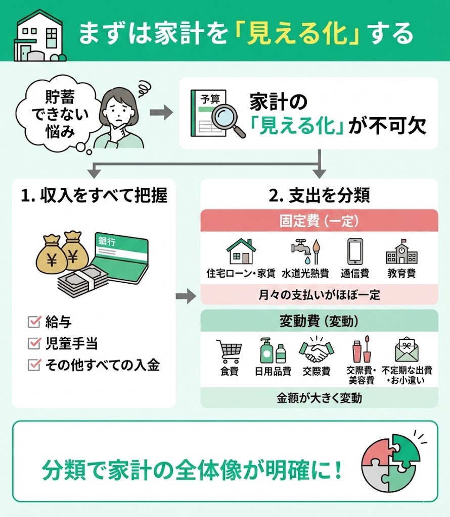 「貯蓄に回すお金がない」と悩んでいるなら、まずは家計を「見える化」することが不可欠です。