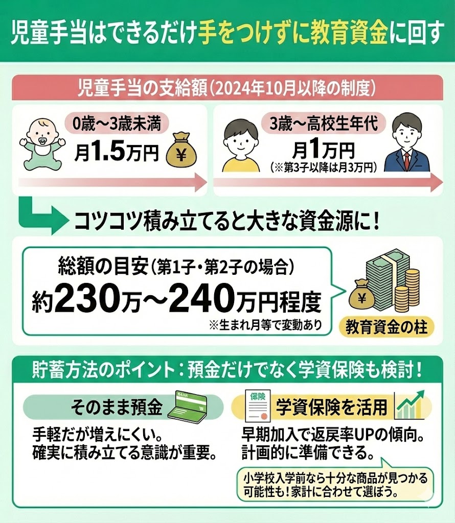 子どもの誕生後に支給される児童手当を貯蓄に回すことは、将来の教育資金を準備する有効な手段です。