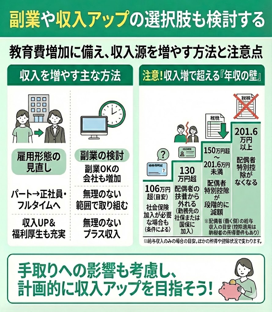 副業や収入アップの選択肢も検討する