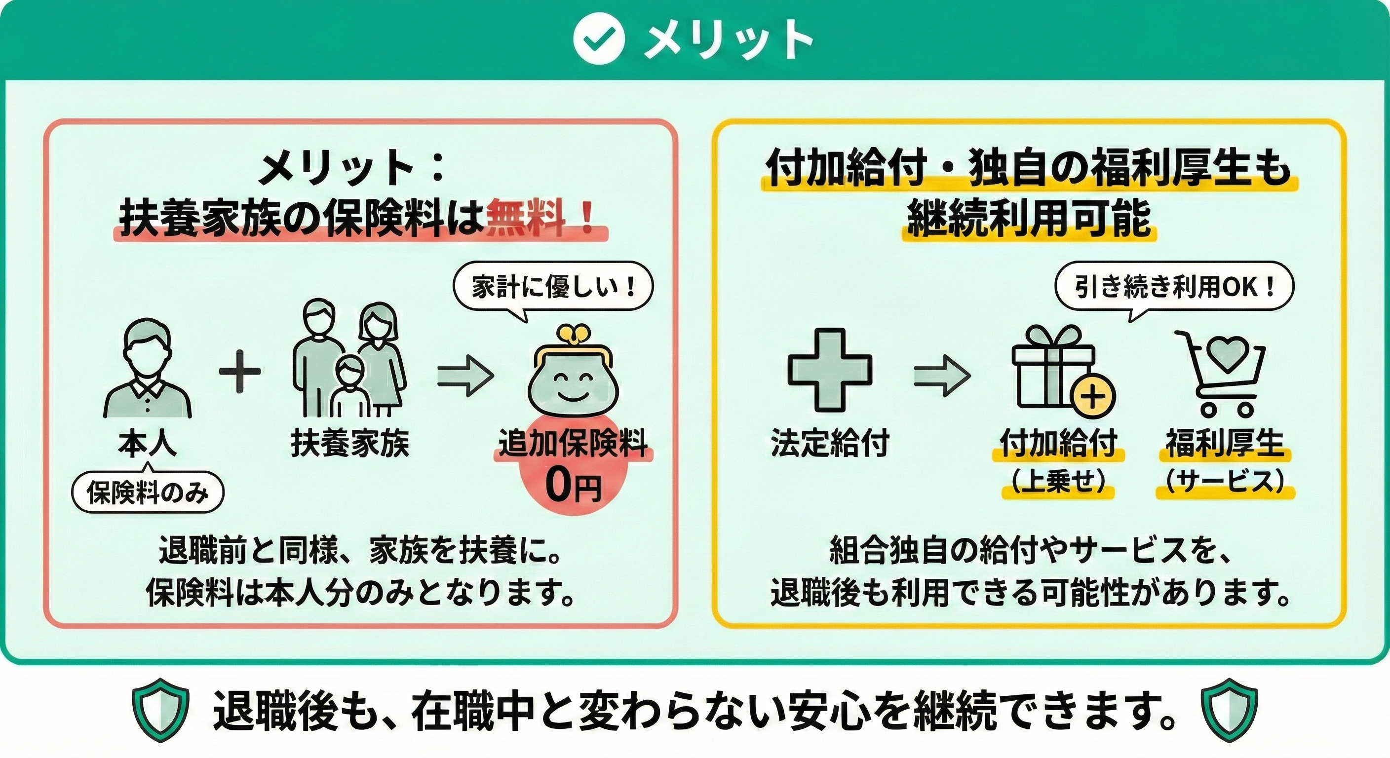 - メリット:扶養家族の保険料負担がない