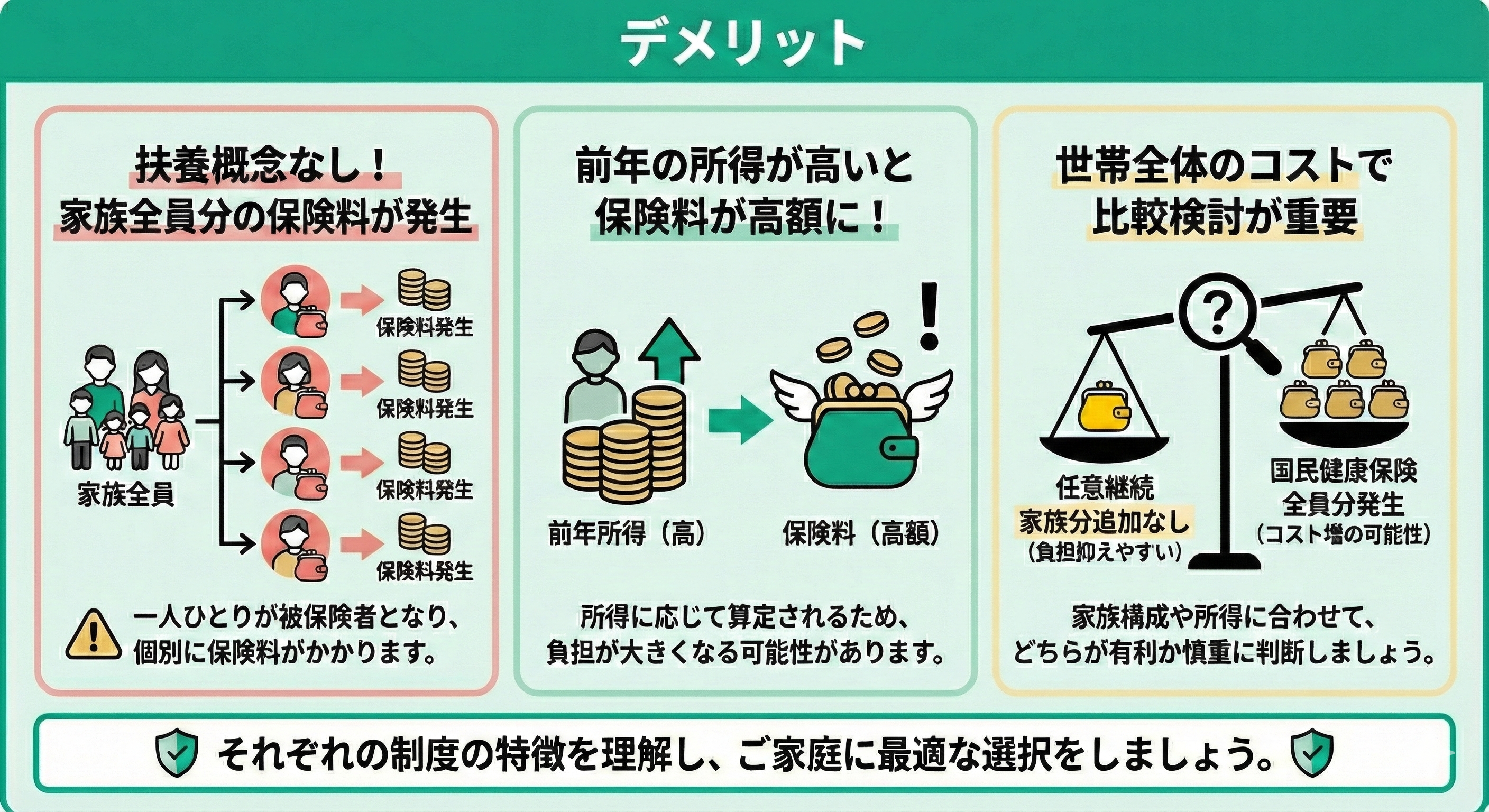 ご自身の世帯構成や経済状況を考慮し、より有利な保険制度を選択することが重要です。