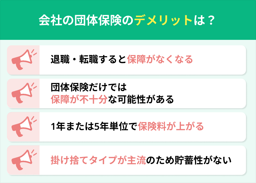 - 会社の団体保険のデメリットとして、気になる点はありますか?