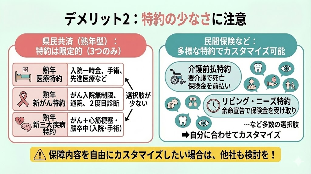 特約を駆使して保障内容をカスタマイズしたい方は県民共済以外がおすすめの可能性があります。