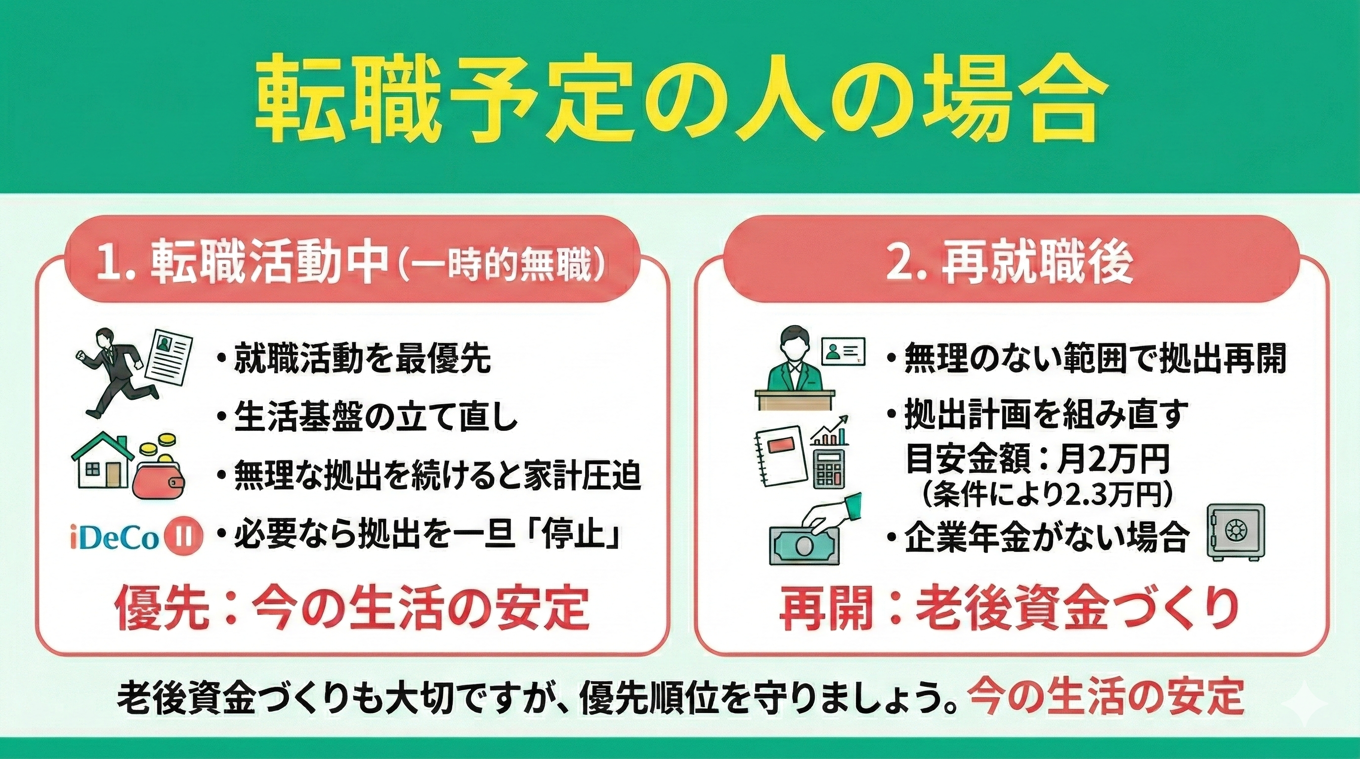 特に、転職までに期間が空く場合や無職の期間が続く場合でも、資産を守るためには早めの対応が大切です。