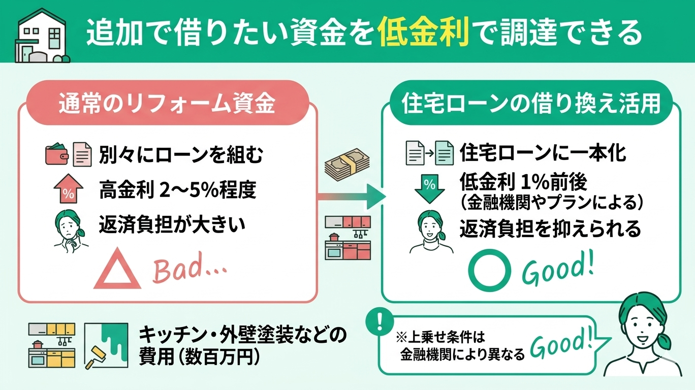 - 追加で借りたい資金を低金利で調達できる